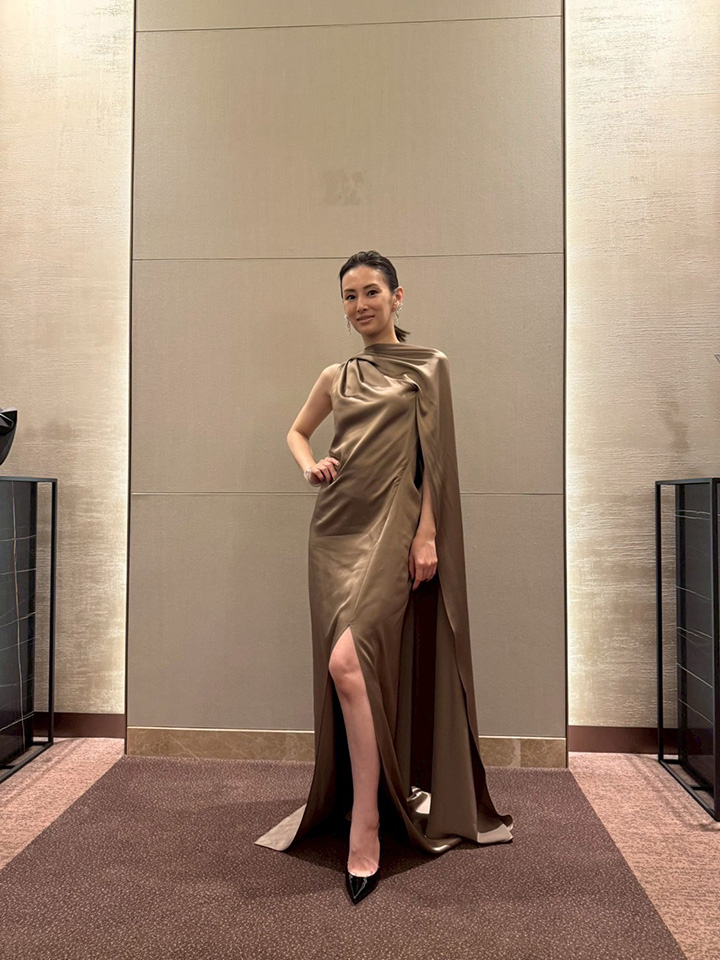 衣装はMax Mara、ジュエリーはMIKIMOTOです。